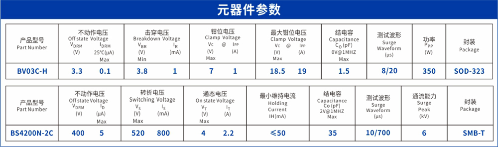 正如上述千兆網(wǎng)口防護(hù)解決方案,第一級(jí)防護(hù),檳城電子推薦使用二合一封裝的BS4200N-2C,該器件既能保證殘壓較低的同時(shí)又可以承受較高的工頻耐壓,滿足ITU-T K.21 IEC6100-4-5等標(biāo)準(zhǔn)測(cè)試要求,并支持對(duì)地AC230V電力線搭接。通過(guò)使用BS4200N-2C進(jìn)行共模防護(hù),將浪涌電流引流至大地,防止大浪涌能量傳遞到后級(jí)設(shè)備,從而確保前級(jí)防護(hù)的安全性。測(cè)試量級(jí)可滿足共模(CM)6kV 42Ω@1.2/50-8/20μs和6kV 40Ω@10/700-5/320μs;差模(DM)2.5kV 10Ω@1.2/50-8/20μs和1.5kV 40Ω@10/700-5/320μs。此外,BS4200N-2C的二合一封裝能夠有效減小占板面積,節(jié)省PCB空間。