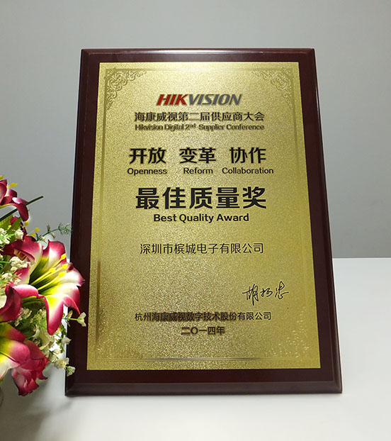 2014年,檳城電子憑借優(yōu)質(zhì)的產(chǎn)品和完善的服務(wù),在??低暤墓?yīng)商大會(huì)上喜獲“最佳質(zhì)量獎(jiǎng)”的榮譽(yù),這對(duì)一直在努力的檳城人是一個(gè)莫大的鼓舞,我們的汗水沒(méi)有白流,我們付出得到了收獲,全體檳城人將再接再厲,創(chuàng)造出更加美好的明天!