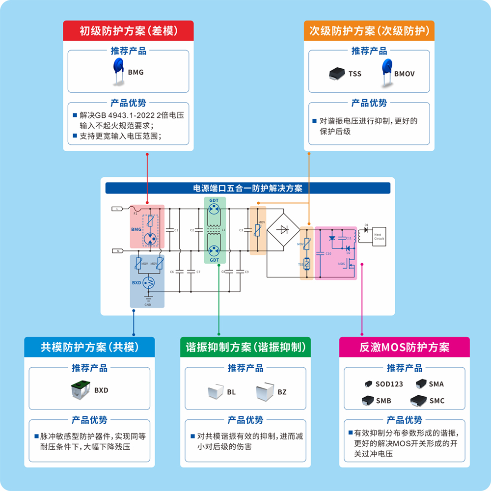 ▼看點(diǎn)一:電源端口五合一防護(hù)解決方案
