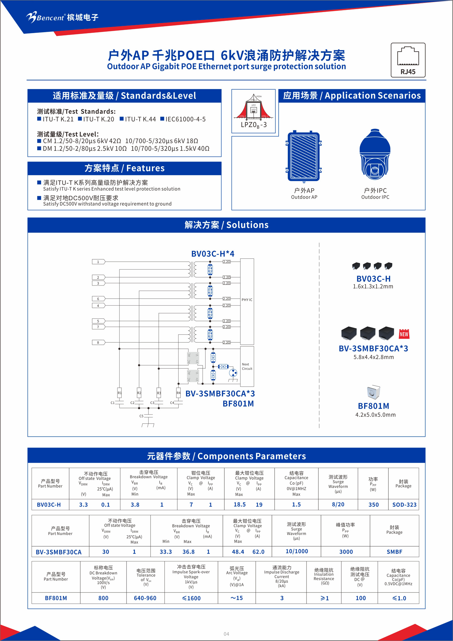 針對網口的浪涌防護,我們帶來了SMBF系列產品,實現(xiàn)小體積,大通流的需求: